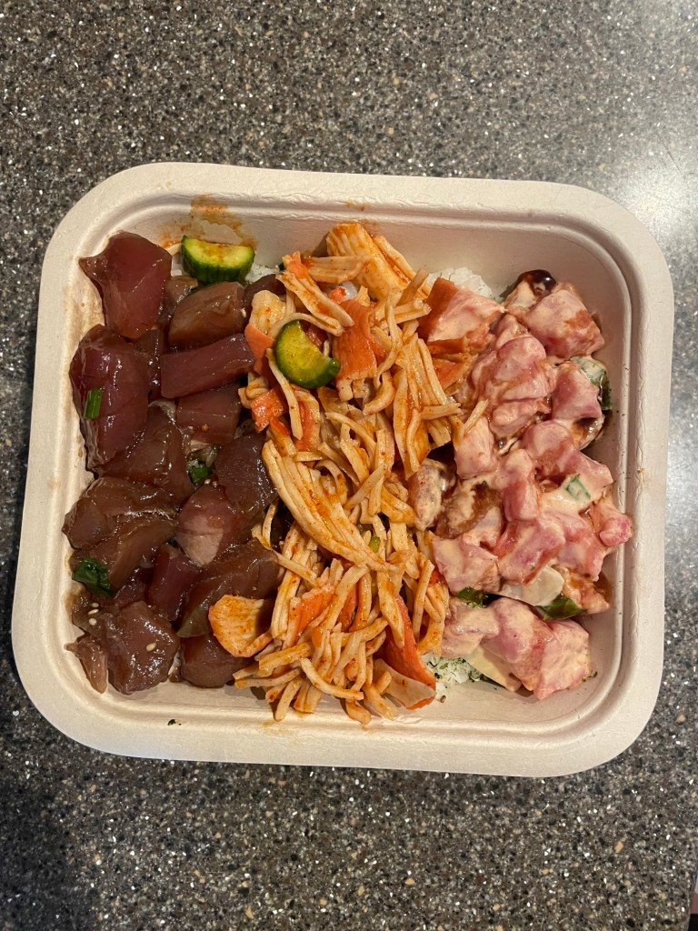 If you’re craving some poke while enjoying the Kohala Coast, there are a few options to satisfy your needs. While I’m typically hesitant to eat any raw fish I pick up from grocery stores in Ohio, I have no problem doing it in Hawaii and I like getting the poke bowls from both KTA and Foodland. Now, locals may have a strong preference with regards to which grocery store has the better poke, but I personally don’t discriminate between the two (being from a state that is nowhere close to the ocean, both the KTA and Foodland poke taste pretty darn good to me). But the absolute best poke I’ve had on the Big Island is from Kawaihae Marketplace. It blows the other two out of the water. The poke bowls from Kawaihae Marketplace aren’t cheap, but they are worth every penny. They are just packed with delicious, fresh fish and you have your choice of side as well. I always try to stop here a few times for lunch when visiting the Big Island. If you like poke, trust me on this one and visit Kawaihae Marketplace.