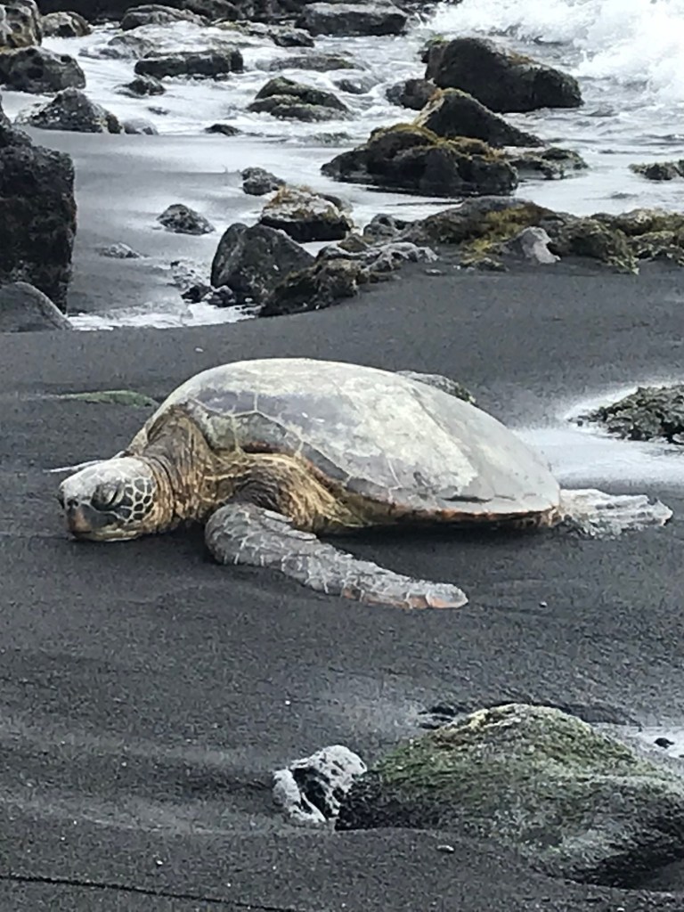 After staying in Volcano, we continued driving around the south side of the island on our way to Kona. The drive directly between Volcano and Kona is just over 2 hours, but I usually make a few stops along the way (are you noticing a trend?) so it takes a bit longer (you’re on island time, baby, what’s the rush?). Punalu’u Beach is a nice stop to see black sand and possibly some green sea turtles. And if you need a snack during the drive, you won’t be disappointed with the malasadas from Punalu’u Bake Shop (it’s also the southernmost bakery in the USA, so another reason to grab some baked goods there). When you need to stretch your legs a bit, stop at South Point and walk around. I don’t advise driving all the way to the southernmost point of the United States. The road to the South Point Cliff Dive location is narrow and a little rough, but I’ve driven my little sedan down it before without issue. But once you get to the former cliff jumping location (the ladder has since been removed so I don’t recommend jumping unless you want to spend the rest of your life in the sea), the “road” becomes more like a trail. I wouldn’t feel comfortable driving down it without 4-wheel drive and I don’t think I’d ever risk it in a rental car. If you want to get all the way to the southernmost point in the U.S., I suggest you park and hike a bit. The trail may not be easy to drive on, but it’s perfectly acceptable to walk down. Plus, this allows you to spend more time focusing on the beautiful views instead of navigating the rough road. A final note about walking around South Point, be aware that you are on a cliff overlooking the ocean. There can be high wind, high surf, and rogue waves. Keep your wits about you as you walk around. Safety first!